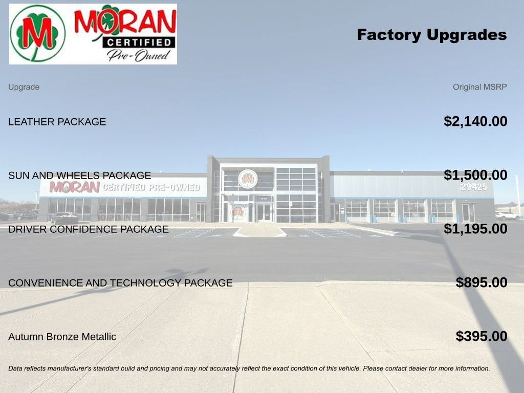 120-Volt Power Outlet, 18 Aluminum Wheels, 3-Spoke Leather-Wrapped Steering Wheel, 6-Way Power Front Passenger Seat Adjuster, AM/FM Stereo w/Seek & Scan/Digital Clock, Apple CarPlay/Android Auto, Bose Premium 9-Speaker System, City-Speed Front Automatic Braking, Convenience & Technology Package, Driver Confidence Package, Driver Information System w/Color Display, Emergency communication system: OnStar, Following Distance Indicator, Forward Collision Alert, Front & Rear Park Assist, Front Passenger Power Lumbar Seat Adjuster, Front Pedestrian Braking, Fully automatic headlights, Heated Driver & Front Passenger Seats, Inside Rear-View Auto-Dimming Mirror, IntelliBeam Automatic High-Beam Headlamps, Lane Keep Assist, Leather Appointed Seat Trim, Leather Package, Leather Wrapped Shift Knob, Power Tilt Sliding Sunroof, Preferred Equipment Group 1LT, Rear Cross-Traffic Alert, Remote Vehicle Starter System, Security system, Side Blind Zone Alert, SiriusXM Satellite Radio, Sun and Wheels Package, Teen Driver, Universal Home Remote, USB Charging Port in Console, Wireless Charging For Devices.