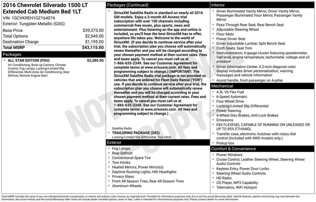 Tungsten Metallic 2016 Chevrolet Silverado 1500 LT LT1 4WD EcoTec3 4.3L V6 6-Speed Automatic Electronic with Overdrive