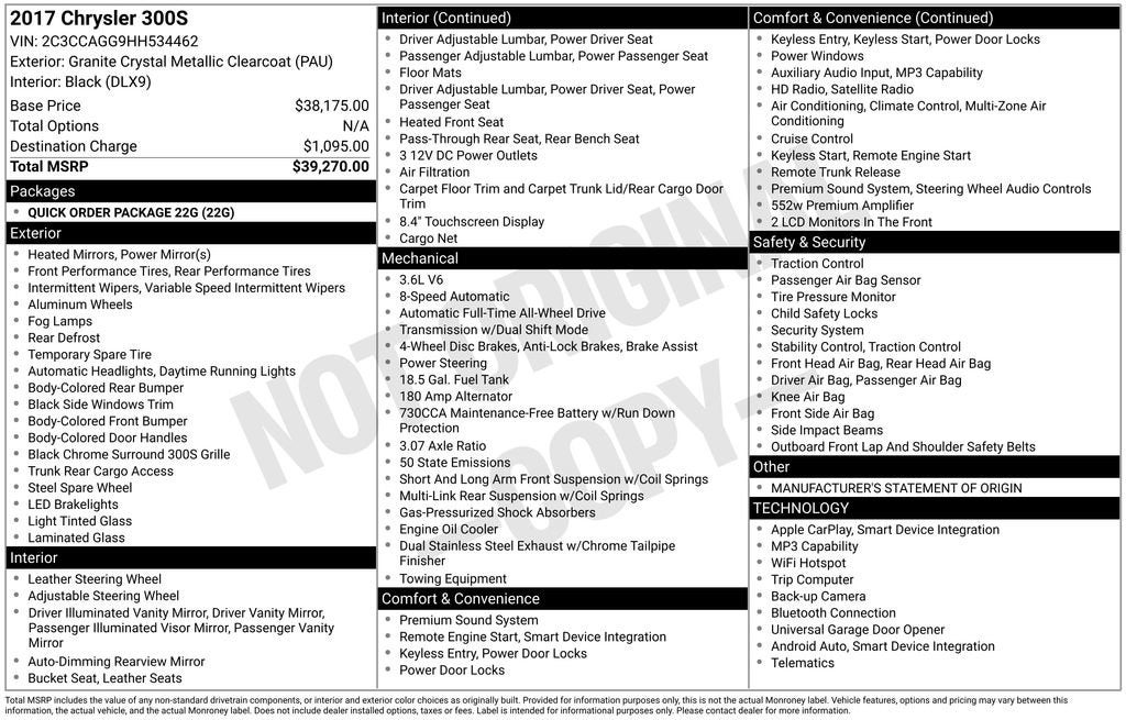Recent Arrival! Clean CARFAX.Granite Crystal Metallic Clearcoat 2017 Chrysler 300 S AWD 3.6L V6 24V VVT 8-Speed Automatic