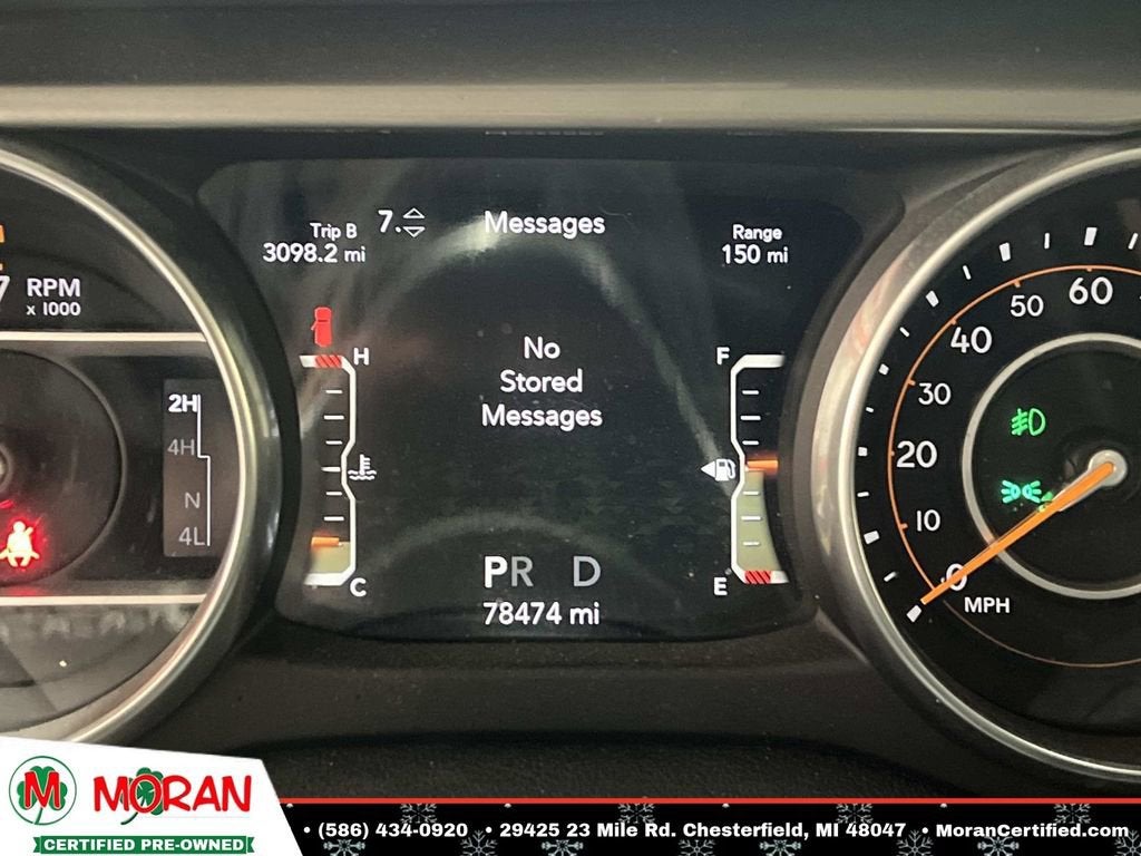 8 Speakers, Alpine Premium Audio System, AM/FM radio: SiriusXM, Anti-Spin Differential Rear Axle, Apple CarPlay/Android Auto, Auto-Dimming Rear-View Mirror, Automatic temperature control, Black 3-Piece Hard Top, Cloth Low-Back Bucket Seats, Cold Weather Group, Electronic Infotainment System Group, Freedom Panel Storage Bag, Front dual zone A/C, Front fog lights, Fully automatic headlights, Garage door transmitter, GPS Navigation, HD Radio, Heated door mirrors, Heated Front Seats, Heated Steering Wheel, Heavy Duty Suspension w/Gas Shocks, Integrated roll-over protection, Leather steering wheel, ParkView Rear Back-Up Camera, Quick Order Package 23G, Quick Order Package 24G, Radio: Uconnect 4C Nav w/8.4 Display, Rear Window Defroster, Rear Window Wiper/Washer, Remote keyless entry, Remote Start System, Roadside Assistance & 9-1-1 Call, Security system, SiriusXM Traffic Plus, SiriusXM Travel Link, Split folding rear seat, Wheels: 18 x 7.5 Polished w/Gray Spokes.