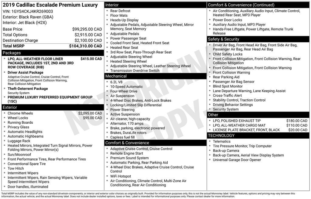 Your Premier Certified Pre-Owned Dealer in Chesterfield, MI – Where You Get the Best Price... PERIOD!Black Raven 2019 Cadillac Escalade Premium Luxury 4WD 6.2L V8 10-Speed Automatic with OverdriveOdometer is 31273 miles below market average! Priced below KBB Fair Purchase Price!12-Way Power Front Passenger Seat Adjuster, 3rd row seats: split-bench, A/V remote, Adaptive suspension, Adjustable pedals, Advanced Adaptive Cruise Control, All-Weather Floor Liner Package (LPO), Apple CarPlay/Android Auto, Auto High-beam Headlights, Auto-leveling suspension, Automatic Seat Belt Tightening, Automatic temperature control, Bose Centerpoint 16 Speaker Surround Sound System, Driver Assist Package, Electronic Powered Parking Brake, Emergency communication system: OnStar Protection, Exterior Parking Camera Rear, Forward & Reverse Automatic Braking, Forward Automatic Braking, Forward Collision Alert, Front dual zone A/C, Fully automatic headlights, Garage door transmitter, HD Radio, Headphones, Heated & Cooled Driver & Front Passenger Seats, Heated rear seats, Heated steering wheel, Illuminated Door Handles, Inclination Sensor, IntelliBeam Automatic High Beam On/Off, Lane Change Alert w/Side Blind Zone Alert, Lane Keep Assist w/Lane Departure Warning, Leather Seating Surfaces, Leather Shift Knob, Magnetic Ride Control Suspension, Navigation System, Power Configurable Second Row Bucket Seats, Power Liftgate, Power Tilt-Sliding Sunroof w/Express-Open/Close, Preferred Equipment Group 1SC, Radio: AM/FM Cadillac User Experience w/Nav, Rear Camera Mirror, Rear Camera Mirror Washer, Rear Cross Traffic Alert, Rear Seat Entertainment System, Reconfigurable 4-Color Head-Up Display, Running Side Board Assist Steps, Safety Alert Seat, SiriusXM NavTraffic, SiriusXM Radio, Theft-Deterrent Alarm System, Theft-Deterrent Package, Vehicle Interior Movement Sensor, Wheels: 22 x 9 Split 6-Spoke Chrome Finish Alloy.Moran Certified Pre-Owned 586-434-0920 - 29425 23 Mile Rd. Chesterfield MI, 48047.