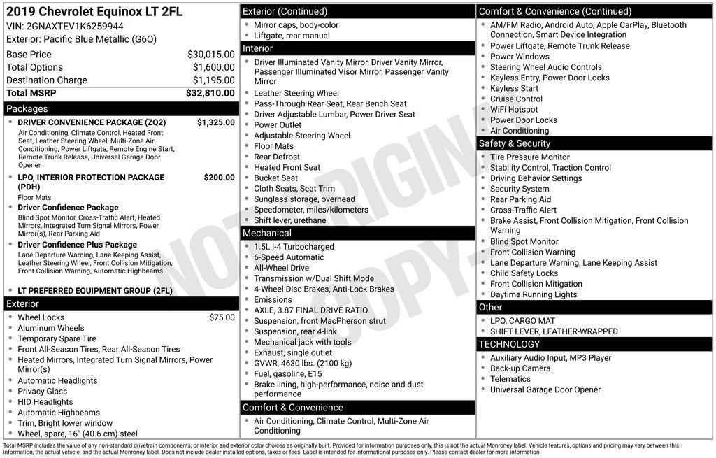 Pacific Blue Metallic 2019 Chevrolet Equinox LT AWD 1.5L DOHC 6-Speed Automatic Electronic with Overdrive