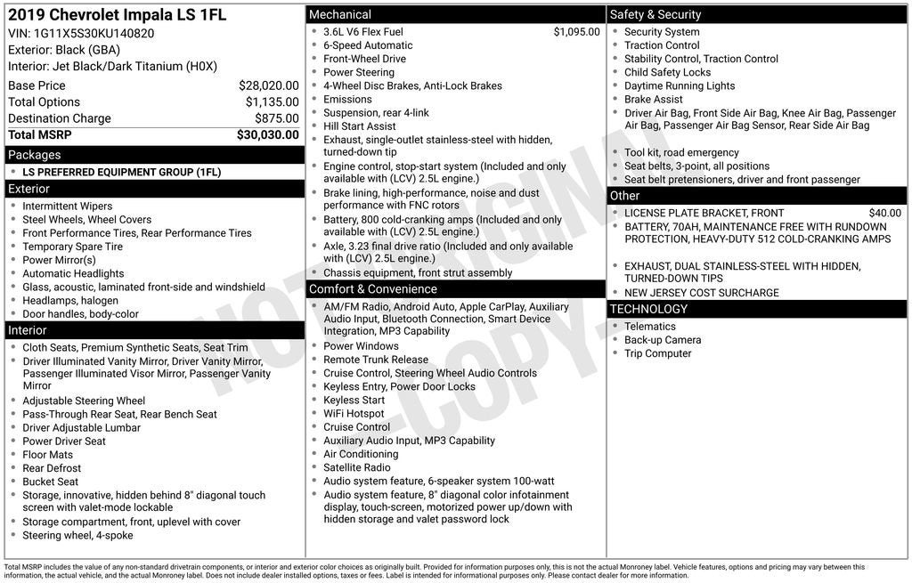 Your Premier Certified Pre-Owned Dealer in Chesterfield, MI – Where You Get the Best Price... PERIOD!Black 2019 Chevrolet Impala LS FWD 3.6L V6 DI DOHC 6-Speed Automatic Electronic with OverdriveOdometer is 9909 miles below market average!Moran Certified Pre-Owned 586-434-0920 - 29425 23 Mile Rd. Chesterfield MI, 48047.
