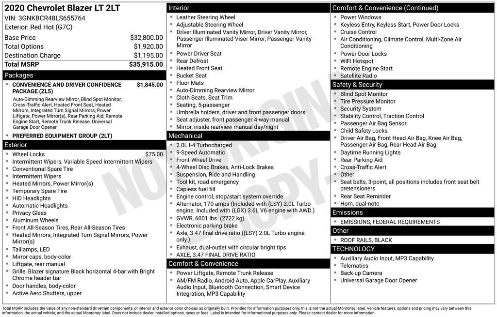 Red Hot 2020 Chevrolet Blazer LT FWD 2.0L Turbocharged 9-Speed Automatic