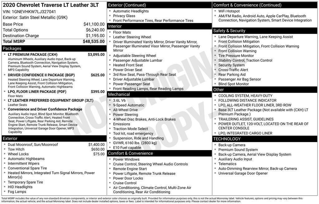 Recent Arrival!Satin Steel Metallic 2020 Chevrolet Traverse 3LT AWD 3.6L V6 SIDI VVT 9-Speed AutomaticAWD.