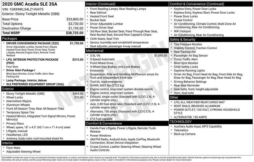 Ebony Twilight Metallic 2020 GMC Acadia SLE FWD 3.6L V6 SIDI 9-Speed Automatic