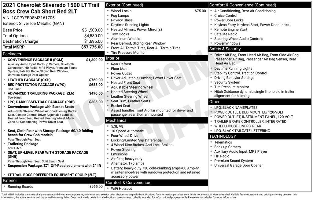 Silver Ice Metallic 2021 Chevrolet Silverado 1500 LT Trail Boss 4WD EcoTec3 5.3L V8 10-Speed Automatic