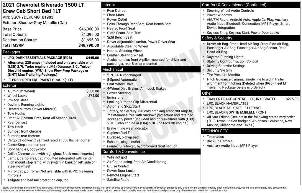 CarBravo 2021 Chevrolet Silverado 1500 LT