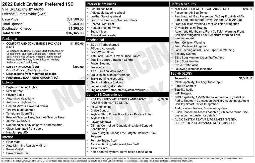 Summit White 2022 Buick Envision Preferred FWD 2.0L Turbocharged 9-Speed Automatic