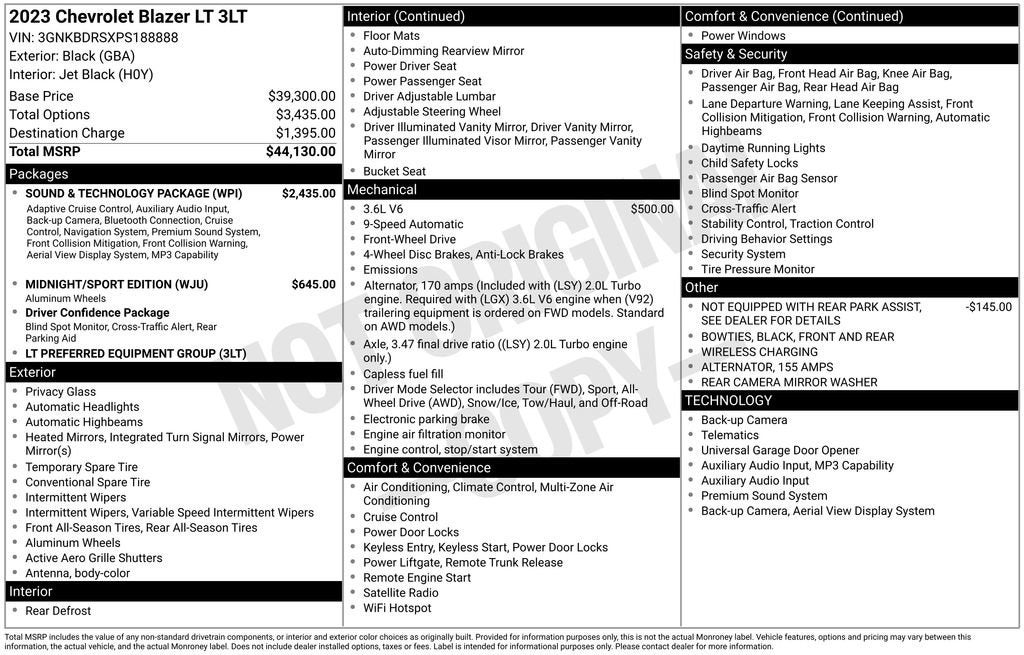 Recent Arrival! Clean CARFAX.Black 2023 Chevrolet Blazer LT FWD 3.6L V6 SIDI 9-Speed Automatic with Overdrive