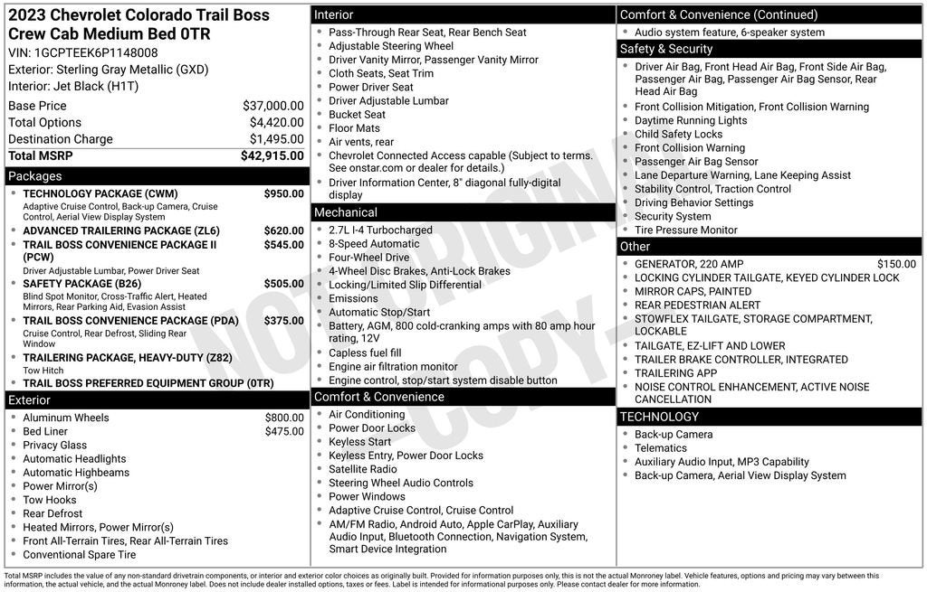 CarBravo 2023 Chevrolet Colorado Trail Boss