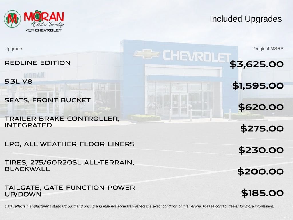 Your Award-Winning Chevrolet Dealer in Clinton Township, MI – Where You Get the Best Price... Period!Certified. Recent Arrival! CARFAX One-Owner. Clean CARFAX. Priced below KBB Fair Purchase Price! Odometer is 24021 miles below market average!Certification Program Details: After passing our multi-point inspection, every CarBravo-Certified vehicle will receive a 12-month/12,000-mile (whichever comes first) limited bumper-to-bumper warranty - so you can feel confident and protected in your purchase! If the vehicle has bumper-to-bumper coverage remaining under the GM New Vehicle Limited Warranty, then the CarBravo limited bumper-to-bumper warranty coverage will go into effective upon expiration of the original New Vehicle Limited Warranty. If the vehicle's bumper-to-bumper coverage under the GM New Vehicle Limited Warranty has already expired by time or mileage as of the date of the CarBravo transaction, then the CarBravo limited bumper-to-bumper warranty becomes effective on the contract date of the CarBravo sale.Sterling Gray Metallic 2023 Chevrolet Silverado 1500 RST 4WD EcoTec3 5.3L V8 10-Speed Automatic10-Speed Automatic, 4WD, Black Cloth, 10-Way Power Driver Seat w/Lumbar, 12.3 Multicolor Reconfigurable Digital Display, 120-Volt Instrument Panel Power Outlet, 4 Black Round Assist Steps (LPO), 6-Speaker Audio System, All-Star Edition, Auto-Locking Rear Differential, Bluetooth® For Phone, Chevytec Spray-On Black Bedliner, Color-Keyed Carpeting Floor Covering, Compass, Convenience Package, Deep-Tinted Glass, Dual Exhaust w/Black Exhaust Tips, Dual Rear USB Ports (Charge Only), Dual-Zone Automatic Climate Control, Electric Rear-Window Defogger, Electrical Steering Column Lock, Electronic Cruise Control, EZ Lift Power Lock & Release Tailgate, Front Frame-Mounted Black Recovery Hooks, Front LED Fog Lamps, Front Rubberized Vinyl Floor Mats, HD Rear Vision Camera, Heated Driver & Front Outboard Passenger Seats, Heated Power-Adjustable Outside Mirrors, Heated Steering Wheel, High Gloss Black Door Handles, High Gloss Black Grille, High Gloss Black Mirror Caps, Inside Rear-View Mirror w/Tilt, Keyless Open & Start, LED Cargo Area Lighting, OnStar & Chevrolet Connected Services Capable, Performance Red Recovery Hooks, Power Front Windows w/Driver Express Up/Down, Power Front Windows w/Passenger Express Down, Power Rear Windows w/Express Down, Preferred Equipment Group 1SP, Protection Package, Rear 60/40 Folding Bench Seat (Folds Up), Rear Rubberized-Vinyl Floor Mats, Rear Wheelhouse Liners, Redline Edition, Remote Vehicle Starter System, SiriusXM w/360L, Standard Tailgate, Steering Wheel Audio Controls, Theft Deterrent System (Unauthorized Entry), Trailering Package, Wheels: 20 x 9 High Gloss Black Painted Aluminum, Wireless Phone Projection, Wrapped Steering Wheel.Moran Chevrolet - (586) 307-6209 - 35500 South Gratiot Ave. Clinton Township, MI 48035.