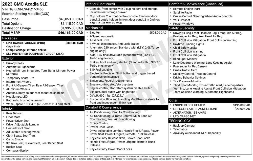 Sterling Metallic 2023 GMC Acadia SLE AWD 2.0L Turbocharged 9-Speed Automatic