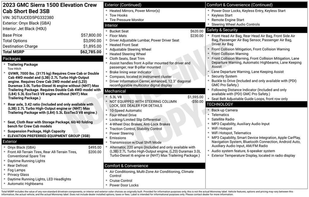 Onyx Black 2023 GMC Sierra 1500 Elevation 4WD EcoTec3 5.3L V8 10-Speed Automatic