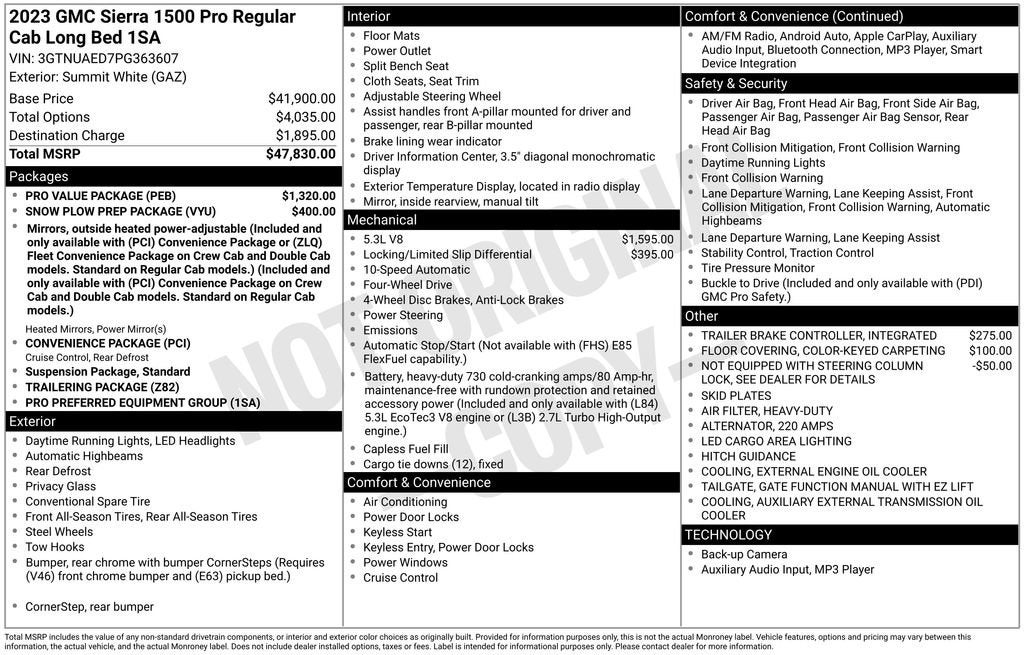 Summit White 2023 GMC Sierra 1500 Pro 4WD EcoTec3 5.3L V8 10-Speed Automatic