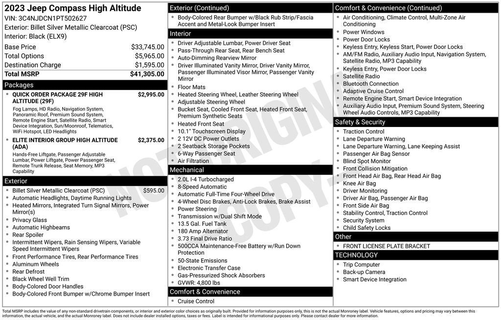 Billet Silver Metallic Clearcoat 2023 Jeep Compass High Altitude 4WD 2.0L I4 DOHC 8-Speed Automatic