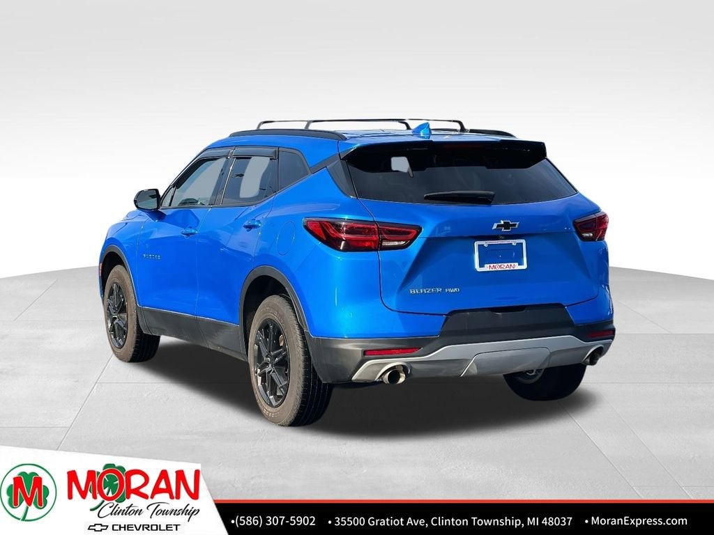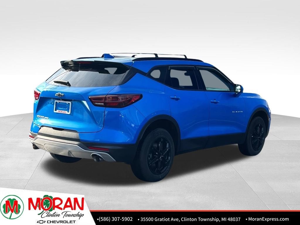 Your Award-Winning Chevrolet Dealer in Clinton Township, MI – Where You Get the Best Price... Period!Certified. Clean CARFAX. Priced below KBB Fair Purchase Price! Odometer is 8939 miles below market average!Certification Program Details: After passing our multi-point inspection, every CarBravo-Certified vehicle will receive a 6-month/6,000-mile (whichever comes first) limited bumper-to-bumper warranty - so you can feel confident and protected in your purchase! If the vehicle has bumper-to-bumper coverage remaining under the GM New Vehicle Limited Warranty, then the CarBravo limited bumper-to-bumper warranty coverage will go into effective upon expiration of the original New Vehicle Limited Warranty. If the vehicle's bumper-to-bumper coverage under the GM New Vehicle Limited Warranty has already expired by time or mileage as of the date of the CarBravo transaction, then the CarBravo limited bumper-to-bumper warranty becomes effective on the contract date of the CarBravo sale.Riptide Blue Metallic 2024 Chevrolet Blazer LT AWD 2.0L Turbocharged 9-Speed Automatic with OverdriveAWD, Adaptive Cruise Control, Black Roof-Mounted Side Rails, Convenience Package, Enhanced Automatic Emergency Braking, Inside Rear-View Auto-Dimming Mirror, Preferred Equipment Group 2LT, Rear Power Programmable Liftgate, Universal Home Remote, Wireless Charging.Moran Chevrolet - (586) 307-6209 - 35500 South Gratiot Ave. Clinton Township, MI 48035.