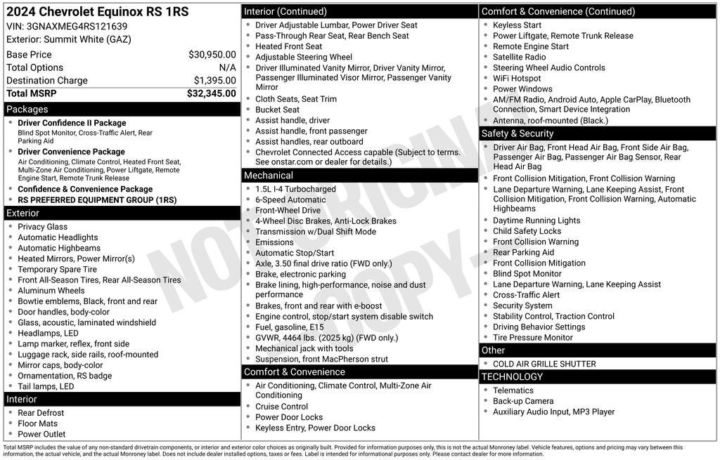 Summit White 2024 Chevrolet Equinox RS FWD 1.5L DOHC 6-Speed Automatic Electronic with Overdrive