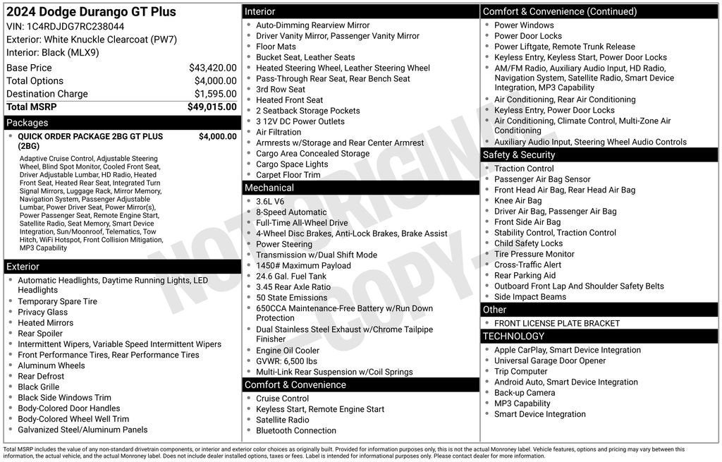 White Knuckle Clearcoat 2024 Dodge Durango GT Plus AWD 3.6L V6 24V VVT 8-Speed Automatic
